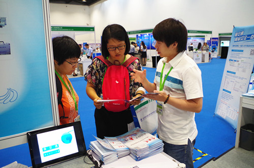 智云達(dá)軟件部技術(shù)人員向參展人員講解食品安全追溯平臺(tái)