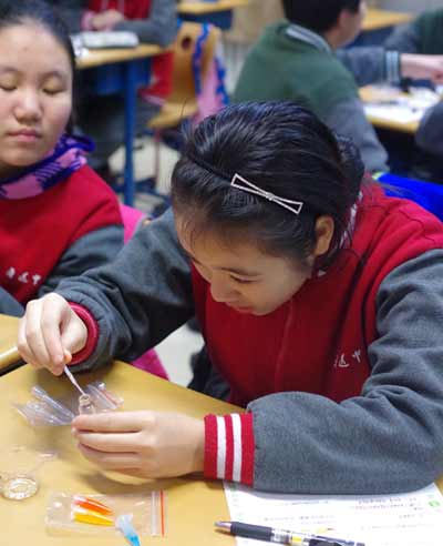 我們的課程主要分為三大主體部分,怎樣吃才健康?(實驗:調配繽紛飲料);健康零食與化妝食品(實驗:冰糖銀耳蓮子中二氧化硫的檢測);談“油”色變的地溝油(實驗:地溝油的檢測)。為中學生普及食品安全知識的同時,提高在校學生對于食品安全及營養方面的認知。