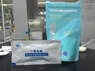 在3~5分鐘內讀取結果,其它時間判讀結果無效。結果顯示為陰性,即沒有三聚氰胺,符合國家標準。