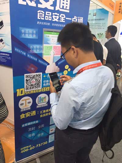 展會首日,現場人山人海,北京智云達展位前早已圍滿參展人群,幾位講解員一一耐心講解、詳細回復參展者提出的問題。本次現場展示新品農藥殘留速測儀、免疫定量分析儀、食品安全檢測儀、快檢速測盒等產品。現場注冊食安通(食品安全一點通(www.cqa360.com))會員,獲價值9800元/年食安通全功能免費體驗3個月,10萬元現金紅包任性搶等多項優惠活動。