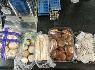 樣品:一共為九個(gè)菇類樣品。七個(gè)為網(wǎng)上購(gòu)買菇類,兩個(gè)為市場(chǎng)購(gòu)買菇類。