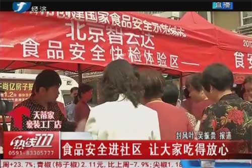 北京智云達作為食品安全快檢企業(yè),現(xiàn)場除了免費幫助社區(qū)居民進行食品安全檢測,還對居民的疑問進行細心解答,現(xiàn)場也有多家電視臺對北京智云達進行了采訪。