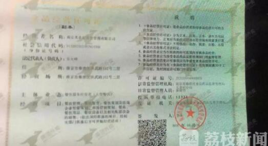 記者發(fā)現(xiàn),通過掃描涉嫌造假的食品經(jīng)營許可證上的二維碼,顯示的信息是南京瑋創(chuàng)餐飲管理有限公司,經(jīng)營場所是五老村街道漢中路、莫愁路商鋪,與現(xiàn)在食品經(jīng)營許可證上顯示的信息完全不符。