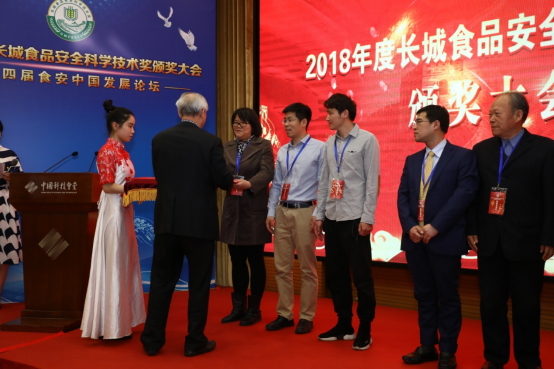 2019年4月22日,"2018年度長城食品安全科學技術獎頒獎大會暨第四屆食安中國發展論壇"在中國科技會堂隆重舉行,食品安全領域的院士、專家教授、技術骨干匯聚一堂,共迎食安盛事。長城食品安全科學技術獎是由國家科學技術獎勵辦備案審批、食品科學報發起和承辦的獎項,也是食品安全領域的重要和專門獎項,旨在鼓勵創新、推廣新技術和建立食品行業高新技術示范。