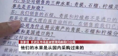 經(jīng)過市場(chǎng)監(jiān)管部門調(diào)查核實(shí),這些水果并非進(jìn)口,而是國產(chǎn)的。南京市玄武區(qū)市場(chǎng)監(jiān)管局新街口分局張家佳告訴記者:“當(dāng)時(shí)我局在超市發(fā)現(xiàn)這個(gè)來源不明的水果的時(shí)候,立即要求下架處理,并且供貨商也承認(rèn),他們的水果是國內(nèi)采購過來的,說他們的水果來自云南。我們以涉嫌虛假宣傳進(jìn)行立案調(diào)查?!?/span>