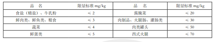表1 食品中亞硝酸鹽限量的國家標(biāo)準(zhǔn)