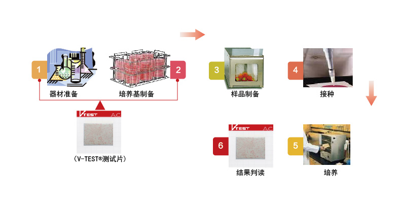 V-TEST指標(biāo)菌快速檢測試紙片為預(yù)制型培養(yǎng)基系統(tǒng),它含有標(biāo)準(zhǔn)方法的培養(yǎng)基,冷凝膠和指示劑,適用于食品、飲用水及原料中的指標(biāo)菌的測定,也可以用于食品加工環(huán)境中的指標(biāo)菌的測定。