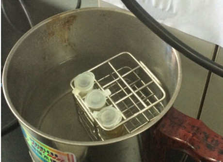 3.將樣品顯色管放入沸水浴中加熱 5 分鐘,取出,再加入 1.5ml 蒸餾水(或純凈水),蓋緊上蓋,上下搖動3次。