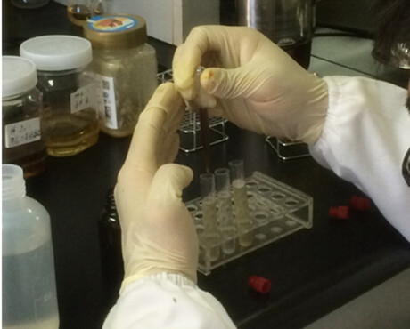 1、取一支檢測管,加入約 1mL 蜂蜜樣品,加入約 3mL 的純凈水,振搖混溶,滴入 3 滴速測液,搖勻。