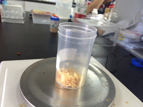 2、  稱取勻漿2g于50mL試管中用蒸餾水定容搖勻,過濾備用。
