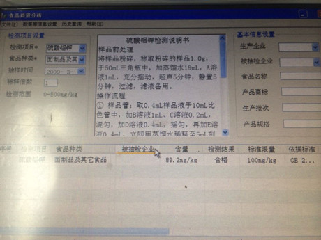 5、放入智云達(dá)SMART-02F多功能食品安全檢測(cè)儀中檢測(cè),檢測(cè)結(jié)果:油條中鋁含量合格,為89.2mg/kg,小于國(guó)家標(biāo)準(zhǔn)限量100mg/kg。