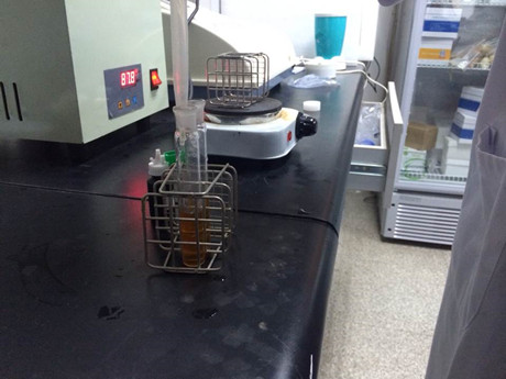 實(shí)驗(yàn)人員取 2g樣品放入比色管中,加入乙酸乙酯,充分振搖,靜置,取上清液于試管中或表面皿上,在 85℃左右水浴中加熱 ,揮干余液,放至室溫后,加入 1mL 的純凈水充分溶解殘?jiān)尤攵臼髲?qiáng)試劑,輕輕搖動(dòng)后,將試管放入 90℃以上水浴中,加熱 5min 后取出,觀察顏色變化。