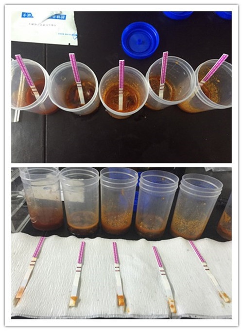 從試紙上的測(cè)試線可以知道送檢的五種火鍋原料都沒有添加罌粟殼。