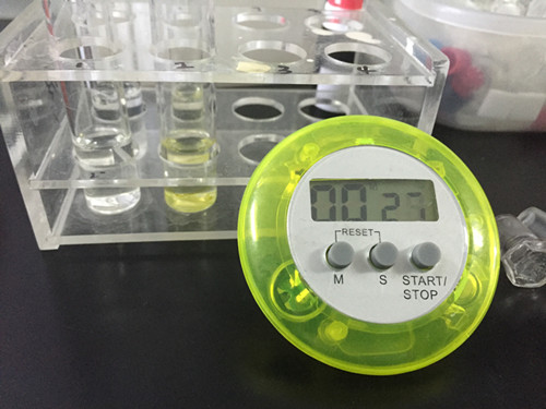 往吹干的比色管中加入3ml緩沖液、50ul酶、20ul顯色劑,振蕩混合后作為樣品管,此外取一根干凈比色管加入3ml緩沖液、50ul酶、20ul顯色劑,振蕩混合后作為對照管,兩管靜置10min;