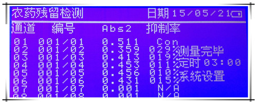 酶抑制法:酶具有單一性和高效性,當農藥存在時,將會抑制酶的活性,使得酶與底物反應減慢,酶與底物反應將會生成一種有色物質,當酶被抑制的時候,有色物質生成減少,通過對比樣本和對照可以在分光光度計中得到顏色變化比對,因此知道農藥是否殘留。