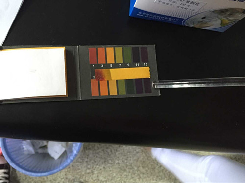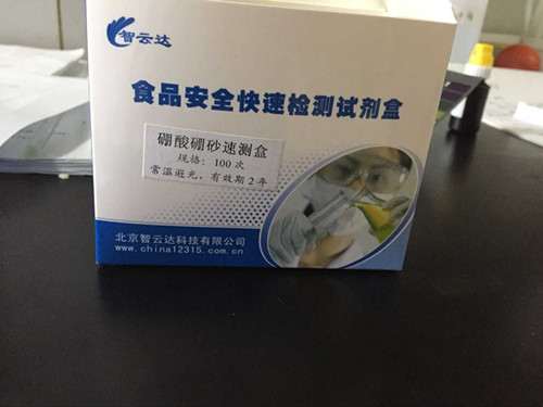 (2)  檢測       在試管中加入硼酸硼砂試劑使ph低于3,用硼砂試紙尖端沾取樣品溶液后取出,用電吹風吹干后觀察試紙變色情況。