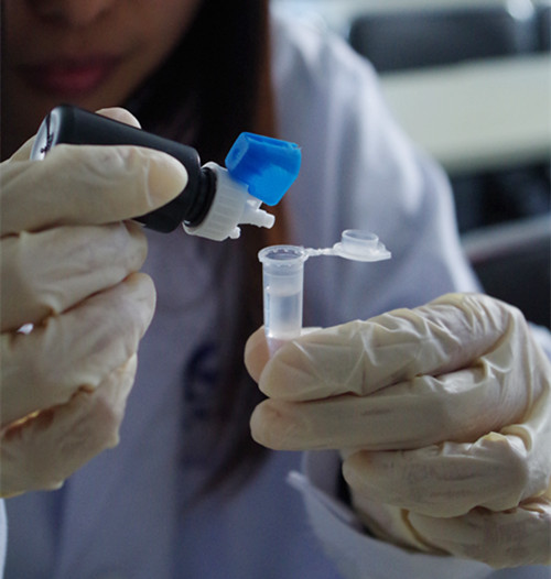 加蒸餾水至刻度,充分震搖后放置,取上清液1.0mL加入到1.5mL離心管中,加入2滴試劑1,搖勻后靜置5分鐘。