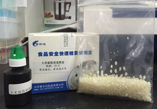 搖晃幾下,30秒內觀察顏色變化,如果溶液呈翠綠、淺綠色,則為新米,黃色、橙色、橙紅色為陳米。