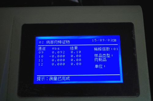 結(jié)果顯示樣品中POD活性值低于正常豬肉,疑似病害肉。快速檢測(cè)只能作為初篩,建議送到第三方檢測(cè)機(jī)構(gòu)進(jìn)行定量檢測(cè)。