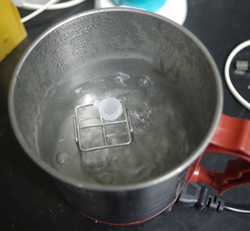 蓋上離心管蓋,放入沸水浴中的托架上加熱2分鐘后取出,上下搖動6次作為待測液。